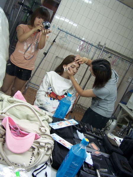 現在正在拍甜美裸妝,因為真的很薄透,所以攝影大哥的功力也要很棒!拍照時~髮妝師都要隨時幫小編注意一些小細節。