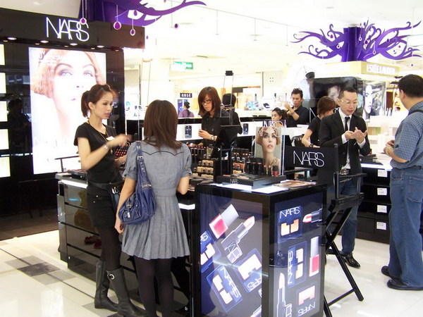 今天開幕,而且是非假日,就有好多人靠櫃試妝,奧麗薇也聽到很多人說:「哇~這牌子很有名說!今天開幕耶」之類的!