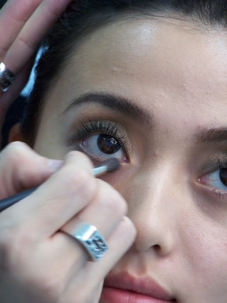 五點半到囉!Dester老師開始做秋妝的示範秀囉!活動在有點BASANOVA的音樂中展開!先幫模特兒眼影霜打底。