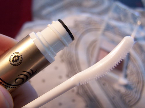 “魔幻翹挺睫毛底膏”是這樣的刷子狀,除了可以幫睫毛打底,它的纖維還可以幫睫毛先拉長變粗一些,而且是透明滴。