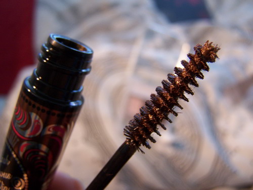 然後再用 “麗絲絨魔幻睫毛膏”,在螺旋刷頭上可以看到很明顯的羽絨纖維,還有超強防汗、皮脂、淚水功能,很適合去趴踢時用啦!根根分明有低調的妝感,如果想要去趴踢的場合,可以像形象圖一樣加強深色眼影的範圍喔!