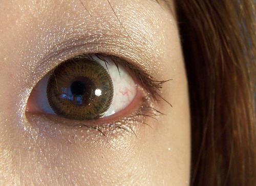 然後用左邊最淺的顏色畫在眼頭跟下眼影的前端,你會發現我不管是用哪一個品牌的眼影,畫法都是一樣的順序,因為那是最適合我眼部的畫法,但因為產品質地跟顏色的不同會有不一樣的效果。(這畫面我也已經刷上限量的睫毛膏囉!也因為這次推出的睫毛膏是淺珠光褐,所以有沒有發現我這次的眼妝有“洋人”的感覺呢?)