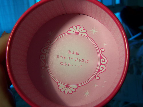 你們看!盒子底下有變美的咒語喔!嘿嘿嘿~“讓我變得更加的優雅呦……”要邊拍邊這樣唸喔!呀~~~可愛可愛!