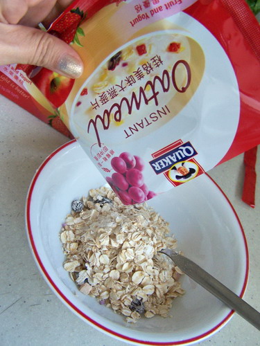 這款水果優格超好吃的喔!裡面是真的有水果!平常一盒要NT.120,才五包!一包要NT.24,但特價就可以買囉!以前有吃過“得意的一天”燕麥片嗎?就是這樣的口感喔!還有海鮮跟楓糖牛奶!我應該還會去買!