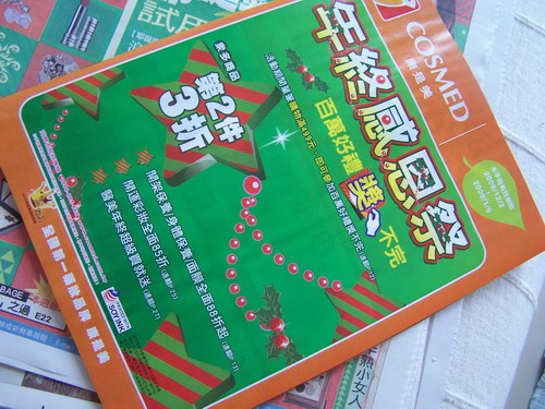 我平常只要一經過就一定會拿小康或小屈的本子!這次小康的本子好多特價品喔!而且幾乎全部的產品都八折起喔!耶~我昨天介紹的戀愛魔鏡耶彩就八折起喔!快去逛逛!昨天在拿這本子時順便買了牙膏!現場看到一個香港觀光客提兩大籃的“我的美麗日記”去結帳!還邊扛邊掉的!酷!紅到香港去!