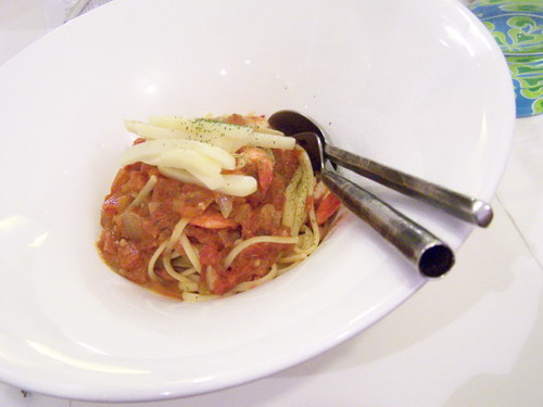 奧麗薇當天的餐點是蕃茄義大利麵。