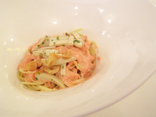 另一位小編好友~小粉紅的餐點是明太子蒜香義大利麵,我其實喜歡這一道,但怕口中會有蒜味,但其實不會滴!(不要以為份量很少,基本上是碗很大。)