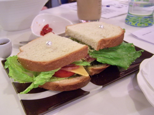 坐我右邊的編編,點的是三明治,還特別用了珍珠竹籤來固定喔!