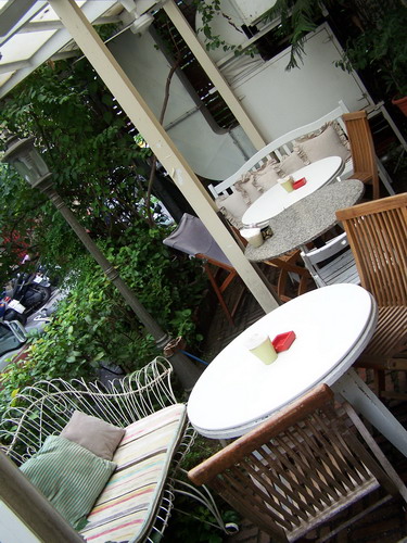 在花園的地方有漂亮的桌椅,出太陽的冬天很適合在這邊曬太陽邊喝茶。
