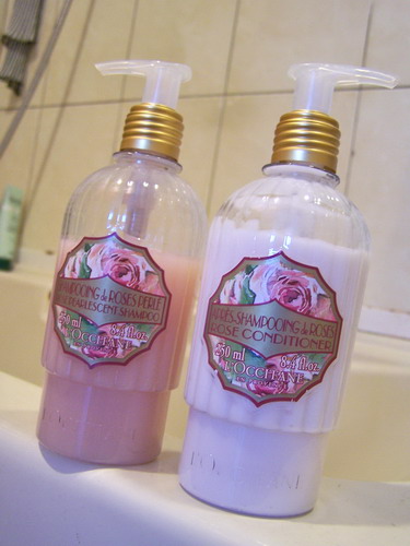 奧大說:這是我目前在使用中的玫瑰洗潤髮品,玫瑰光漾洗髮乳加上玫瑰光漾潤髮乳,250ml各NT.880,使用玫瑰香的髮品,整個清潔過程就已經很浪漫了,因為會一直聞到玫瑰香!洗髮的部份是半透明的粉紅凝露狀,潤髮乳是輕盈的乳狀,含有天然玫瑰花露水、玫瑰果油精華(含有Omega 3及Omega 6滋養因子)等滋潤修護成分,所以使過過的髮絲會有柔滑感,最棒的是頭髮會散發出玫瑰香,會讓旁人很想接近吧!天然基底配方不含矽靈,而且每一種髮質都很適合,就算油性頭皮的人也不會覺得潤髮乳讓你產生負擔感,是一組使用隨性又很浪漫的產品。(拍照的時候還有這樣,但快要用完,因為潤髮用量是洗髮的一半,我應該要再去買一罐玫瑰光漾洗髮乳)