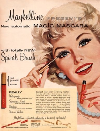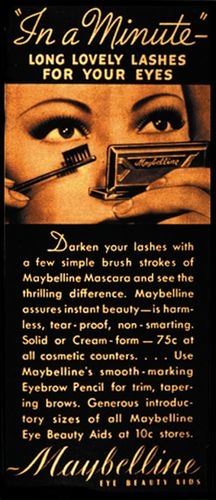 好多保養彩妝品的誕生,真的全靠女人一股想變美的執拗而產生,但說“執拗”合理嗎…?因為品牌創始人─Thomas L. Williams於1913年時、為了幫19歲的妹妹─Mabel贏得某人芳心,使用了凡士林加炭粉的技巧輕沾睫毛,沒想到就這樣一刷定江山─結婚了。於是在1915年時、用妹妹的名字─Mable與Vaseline(凡士林)合在一起誕生了MAYBELLINE這品牌,並創立了化妝品公司,開始研究睫毛膏及彩妝品的種種。而且早期的睫毛膏可是以一支軟管黑膠,再加上一把刷子一起使用喔!然後1960年才有目前睫毛膏產品的雛型,並主張可防水,1971年更是推出了讓女人瘋狂搶購的Great Lash(明眸睫毛膏),這款超強、外型也很可愛的睫毛膏,每0.5秒就賣出一支。