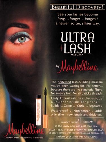 1960年Ultra Lash平面廣告:在這年代就已經開始講究防水,所以Ultra Lash是第一支防水型睫毛膏。